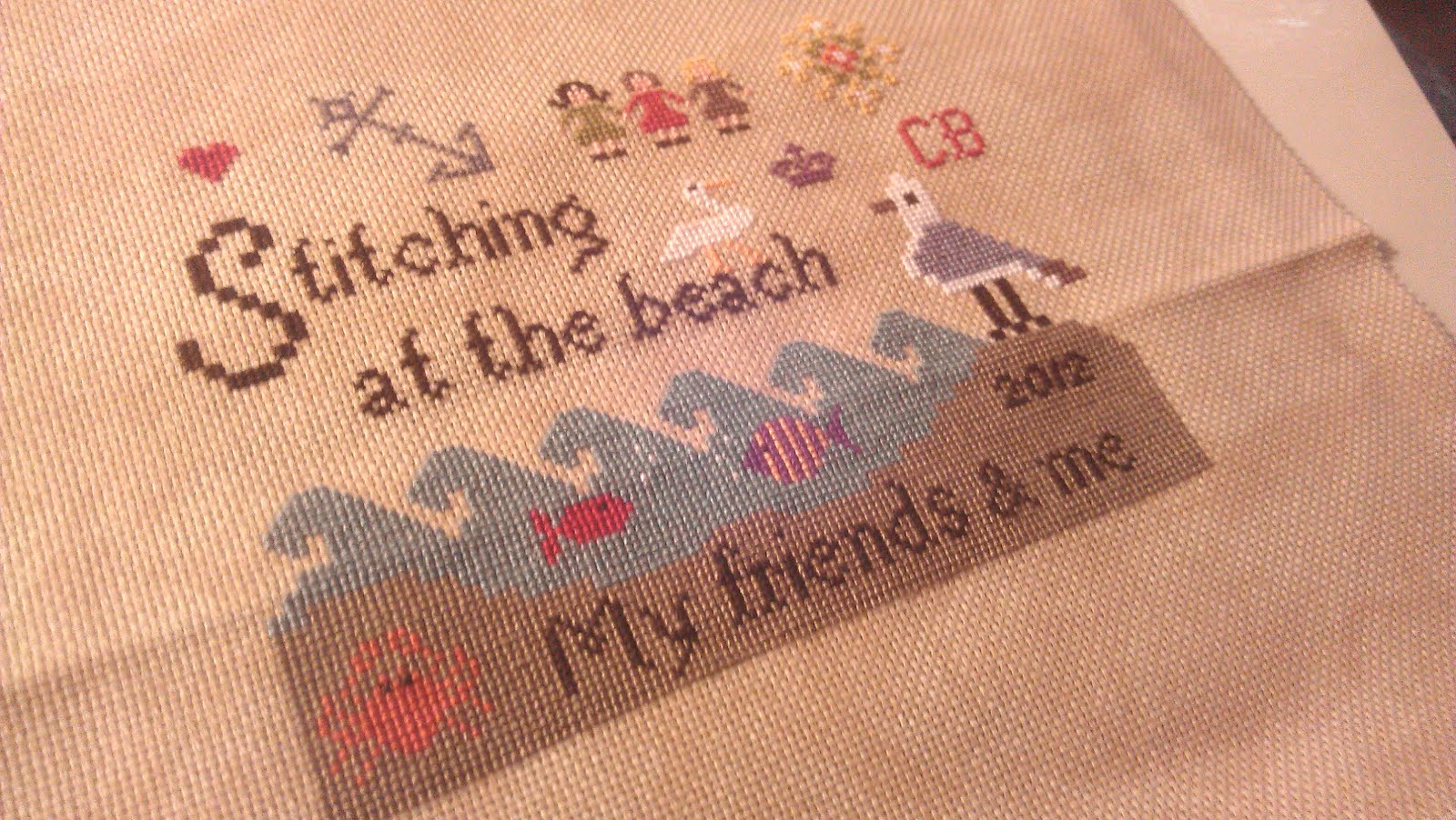 Stitched on Silkweavers 32ct lugana, color Creekstone