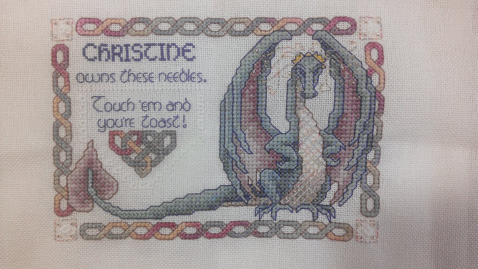 Stitched on 32ct platinum lugana