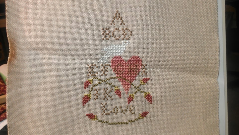 Next up, the SAL group that did the DONKEY wanted to stitch something in honor of upcoming Valentine's Day. We chose Samper Pear VI, a freebie pattern from Sampler and Santa's - Pear page.